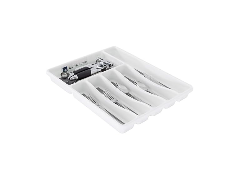 - DURABLE DESIGN - This sturdy kitchen drawer organizer is made from durable plastic that can withstand normal daily wear and tear, and the rubber-lined interior compartments help the contents to stay in place instead of sliding around the bottom.