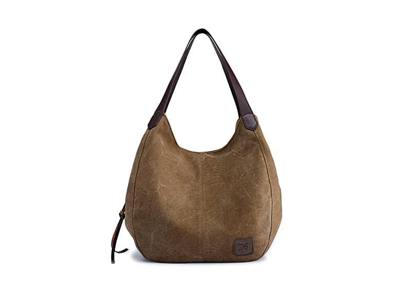 - (1) Canvas sling boho purses for women hobo bag Multi-pocket Cotton Casual Handbag-brown