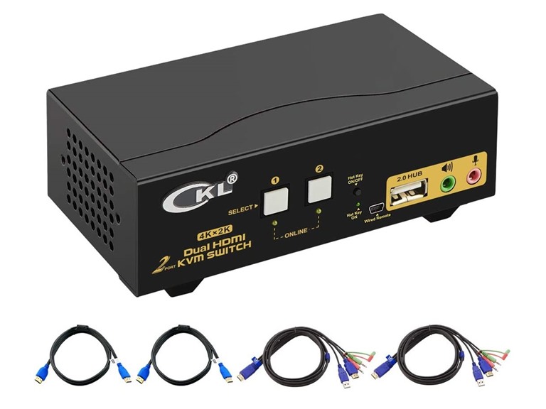 - (1) CKL HDMI KVM 2 Port 4K 30Hz Dual Monitor Extended Display (CKL-922HUA)