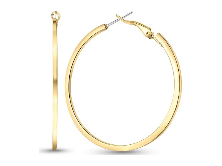 - (1) Swogue Gold Medium Hypoallergenic Lightweight Big Hoop Earrings for Women 18K Real Gold Plated Circle Hoops for Women (50mm)