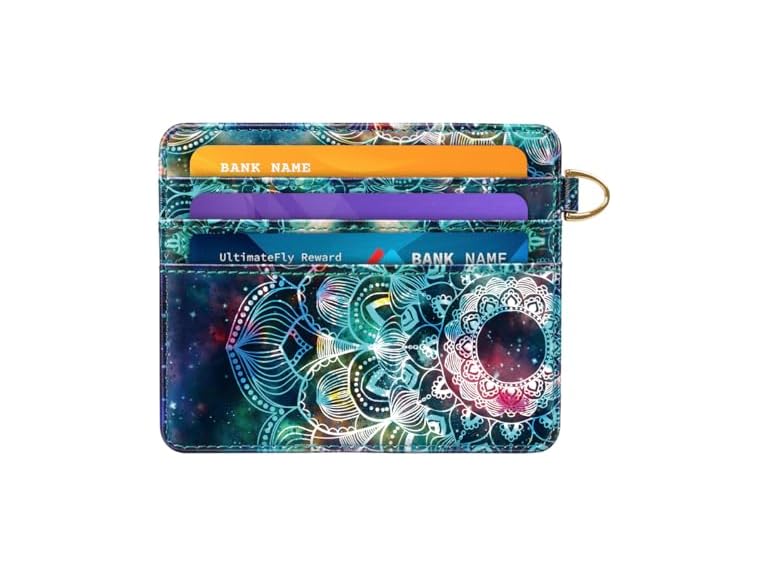 - (1) Simikol Slim Minimalist Front Pocket RFID Blocking Credit Card Holder Small Wallet Cute Card Cases for Women,Mandala