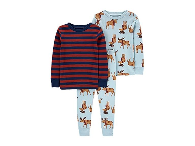 - (1) Simple Joys by Carter's Baby 3-Piece Snug-fit Cotton Holiday Pajama Set, Burgundy Stripe/Light Blue Moose, 6-9 Months