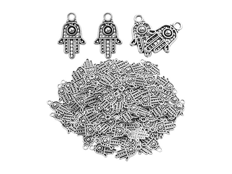 - (1) Hendevl 100pcs Antique Silver Hamsa Hand Charms Hand of Fatima Pendants Jewelry Making Findings for DIY Necklace Bracelet