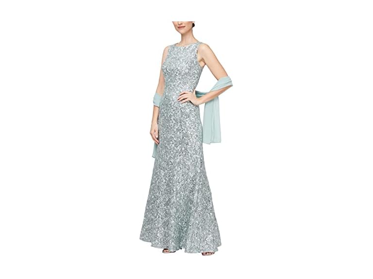 - (1) Alex Evenings Women's Long Sleeveless Mother of The Bride Dress with Shawl (Petite and Regular Sizes), Ice Sage, 10
