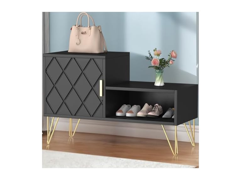 - (1) yoyomax Storage Bench with 2 Compartments & Adjustable Shelf, Holds up to 350lb Shoe Rack for Entryway/Hallway(30in, Black)