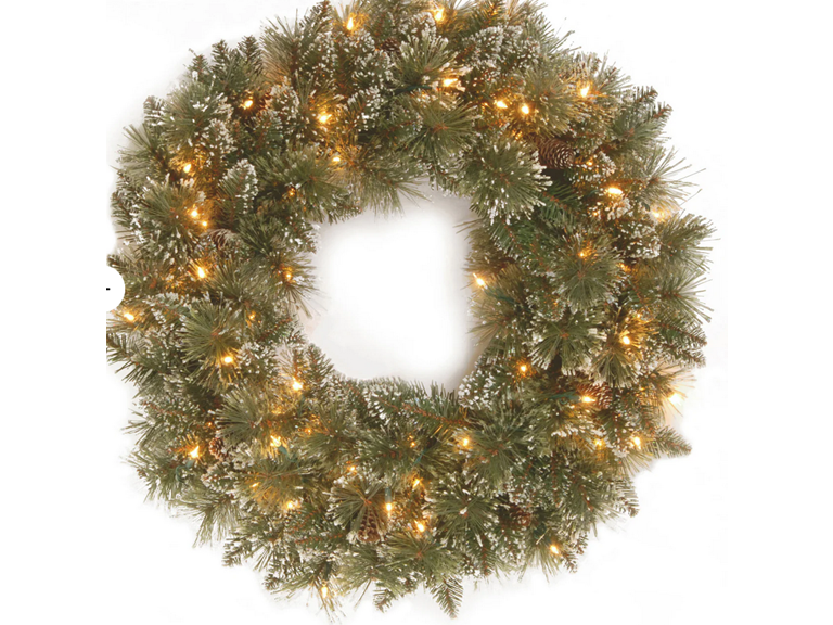 - Includes one green Glittery Bristle Pine artificial wreath pre-strung with 50 multi-colored LED lights - operated through a WiFi/Bluetooth connection and the Twinkly app - to power the lights, simply plug in to the nearest wall outlet