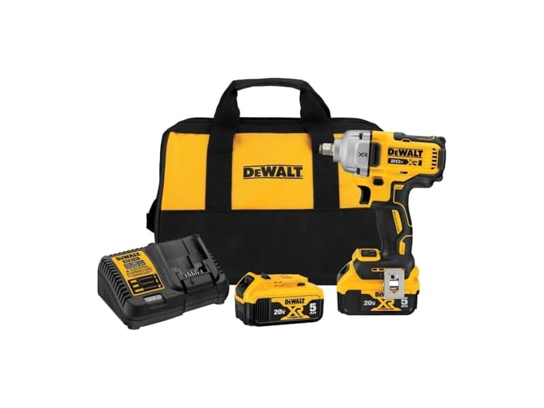 - (1) DEWALT DCF891P2 20V MAX Impact Wrench, Cordless, 1/2 inch, 2 Batteries and Charger Included: DCF891 Impact Wrench; (2) DCB205 5.0Ah Batteries; Charger; Kit Bag; Belt Clip