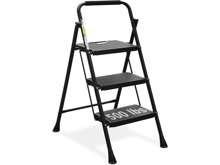 - 3-STEP LADDER: Open: 20.1" x 26.8" x 40.9", Folded: 44.5" X 20.1" X 1.6", Net Weight: 11.5 pounds, Maximum Load: 500 pounds. HBTower Safety Folding 3 Step Steel Ladder is made for you!