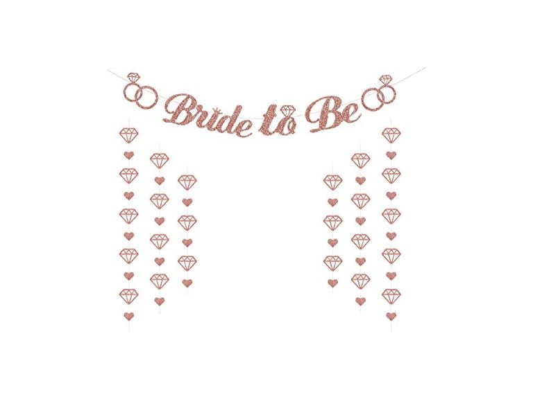 - (1) Qihui7 Glitter Rose Gold Bride to Be Banner for Bridal Shower Party Decorations Heart Diamond Party Garlands for Wall Decor (Rose Gold)