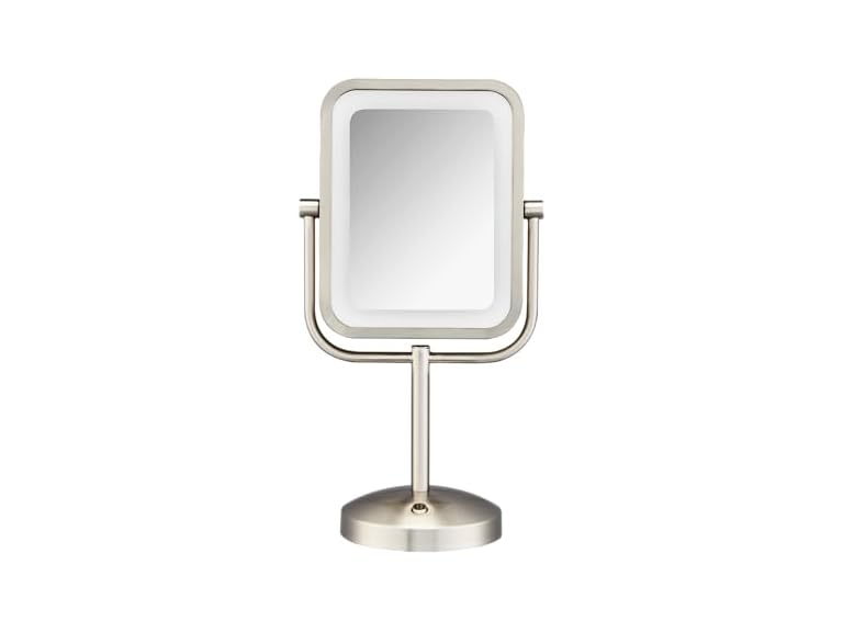- Conair Lighted Makeup Mirror, LED Vanity Mirror, 1X/8X Magnifying Mirror, Battery Operated in Brushed Nickel