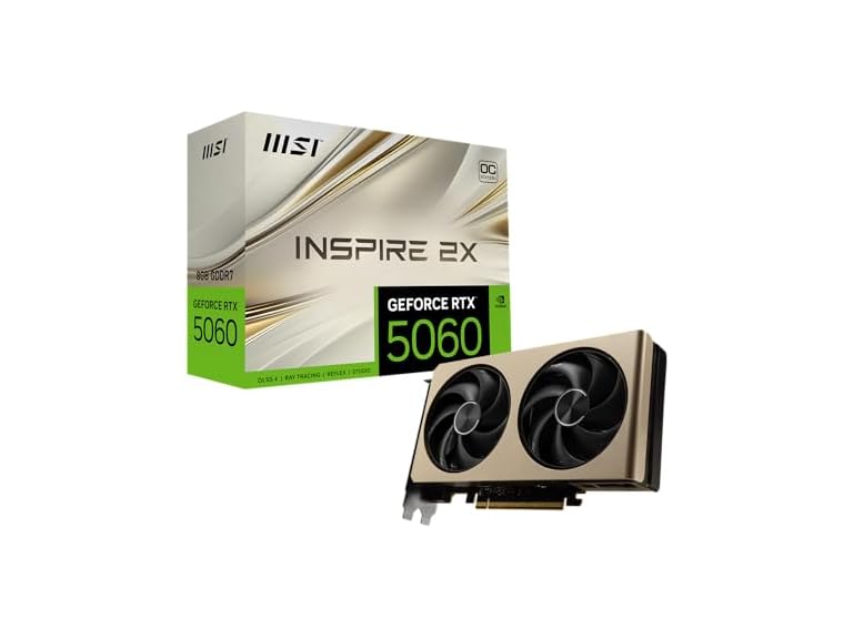 - (1) MSI Gaming RTX 5060 8G Inspire 2X OC Graphics Card (8GB GDDR7,128-bit, Extreme Performance: 2550 MHz, DisplayPort x3 2.1a, HDMI 2.1b, NVIDIA Blackwell Architecture)