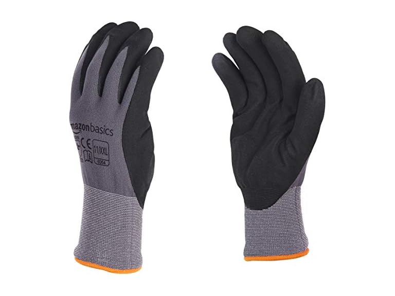 - Amazon Basics Micro-Foam Nitrile Coated Work Gloves, Nylon Liner Fiber, Touch Screen, Grey, 11/XXL, 12-Pair