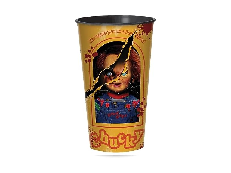 - SPOOKTACULAR DESIGN: Impress your Halloween party guests with this one-of-a-kind Child's Play Chucky 32 oz Plastic Cup, featuring a hauntingly fun printed design that will instantly elevate your drinkware game.