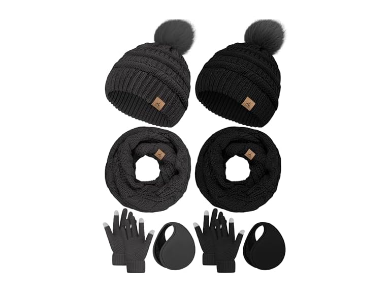 - Basic Product - You'll get two winter warm sets in black and dark grey, including two hats, two neck scarves, two ear warmers and four gloves.