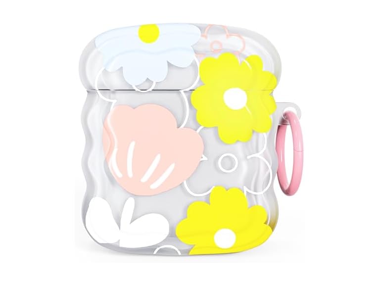 - 【Flowers Pattern Design】Unique irregular wave bezel and beautiful flower pattern design for airpods case, makes your air pod more attractive. The case come with a keychain, you can attch it on your backpack, handbag, pant etc.