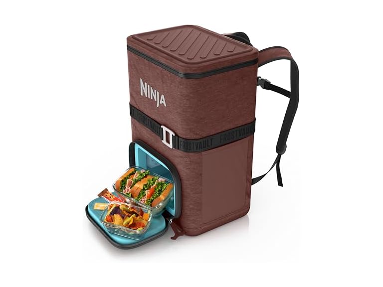 - (1) Ninja | Backpack Cooler | FrostVault Go 36 Can Soft Cooler | Leakproof Zipper with Built in Can Opener, 2 Ice Packs & Dry Storage Drawer | for Hiking, Camping & More | Canyon Red | FF136MR