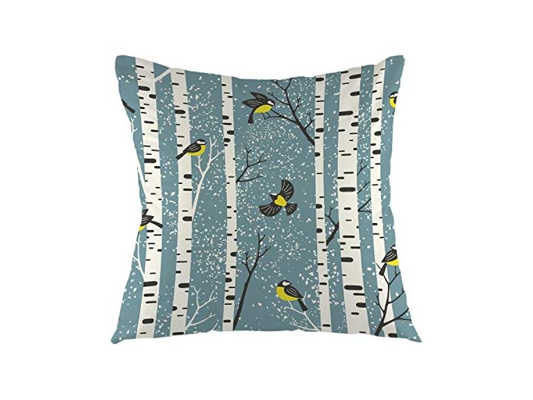 - (1) oFloral Birch Tree Pillowcase Birds Winter Snowy Throw Pillow Case Square Cushion Cover for Sofa Couch Bedroom Living Room Dorm Decoration 18 X 18 Inch Light Blue
