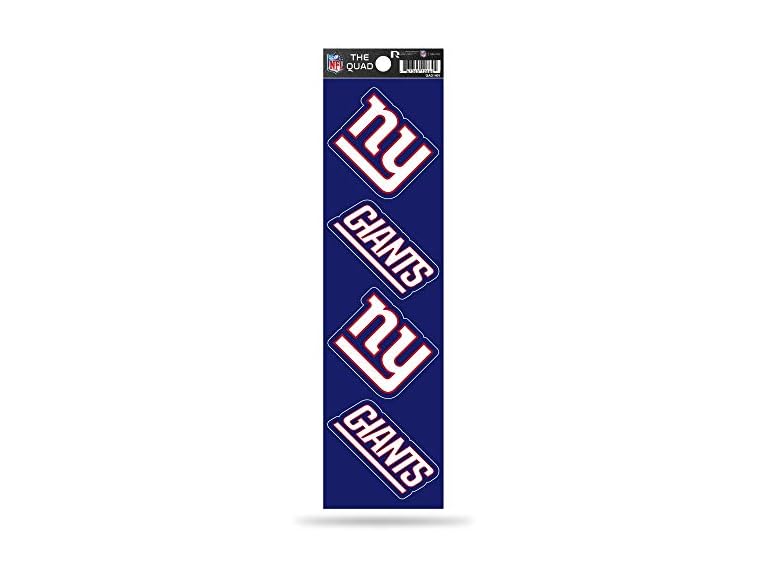 - (1) Rico Industries NFL Die Cut 4-Piece The Quad Sticker Sheet, New York Giants , 3 x 11.5-inches