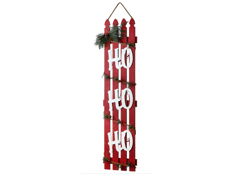 Welcome visitors during the Christmas holiday with this Ho Ho Ho Red Wooden Fence Wall Sign. It is constructed of lightweight wood composite material in a red painted picket fence design with letters in a contrasting bright white. The combination of the festive red color with red berries and mini pine cones adds a cheerful, rustic charm. The fence design gives it a playful, country feel, making it a great focal point for your holiday decor. With the hanging loop, it can be easily displayed on a wall or above a mantel.