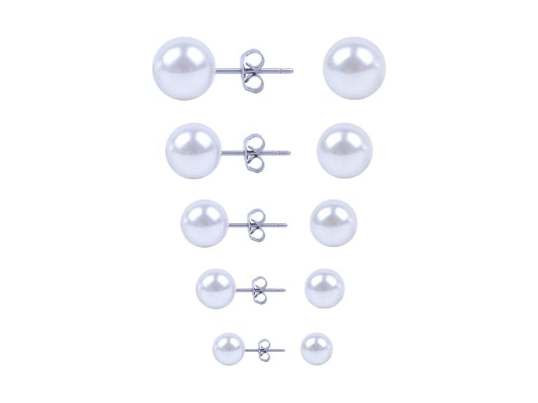 BronaGrand 5 Pairs Faux Pearl Stud