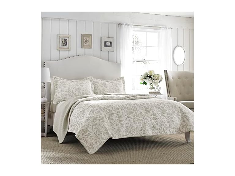 - (1) Laura Ashley - King Quilt Set, Soft Cotton Bedding with Reversible Design, Medium Weight for Year Round Use, 3 Piece Bed Set with Matching Pillowcases (Amberley Beige)
