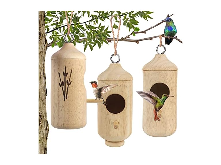 - (1) lotmusic Hummingbird House, Wooden Hummingbird Houses for Outside Nesting, Bird Houses for Garden Window Outdoor Home, Decoration, 3 Pack