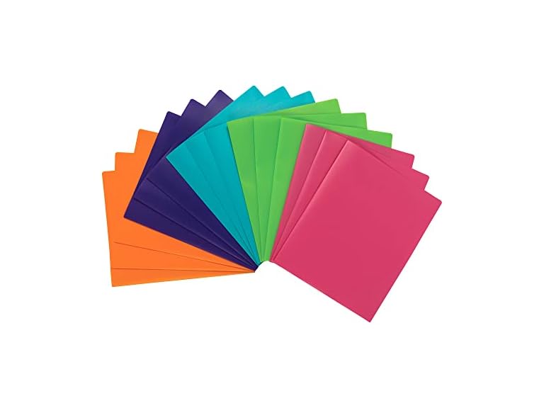 - (1) Samsill Durable Plastic Poly Pocket Folders, 15 Pack Assorted Fashion Colors, 2 Inside Pockets, Used for Office and School Supplies, Letter Size File Folders, Business Card Slot