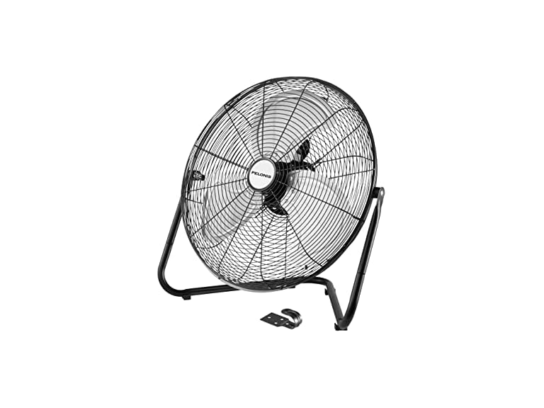 - (1) Pelonis Fan 20 Inch Floor Fan | Heavy Duty All Metal High Velocity Floor Fan with 3-Speeds| Adjustable Tilting Head | Quickmount Bracket for Home, Industrial, and Commercial Use