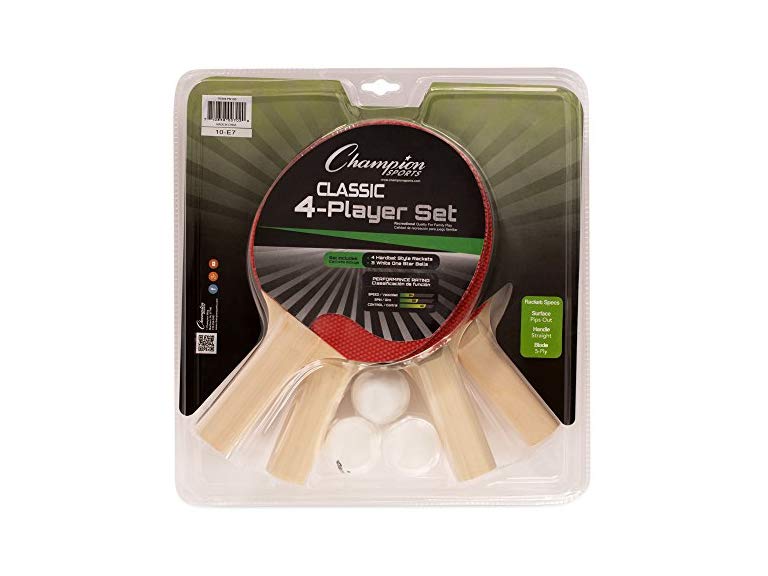 - (1) Champion Sports PN100 Table Tennis Set: 4 Player Ping Pong Accessories Kit with 4 Paddles & 3 Balls, Indoor Ping Pong Equipment for Men, Women & Kids