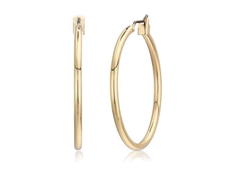 - Goldtone Hoops: Make a sophisticated statement with the gorgeous high polished shine of these goldtone hoop earrings that can be worn with every outfit day by day with its timeless and classic design
