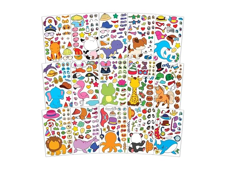 - (1) BOGIKI 15 Sheets Make Your Own Animal Stickers for Kids Girls Boys Toddlers Create A Face Decal Set Large Print Pack Custom Waterproof Decals Pieces Craft Sticker Books Decor Supplies