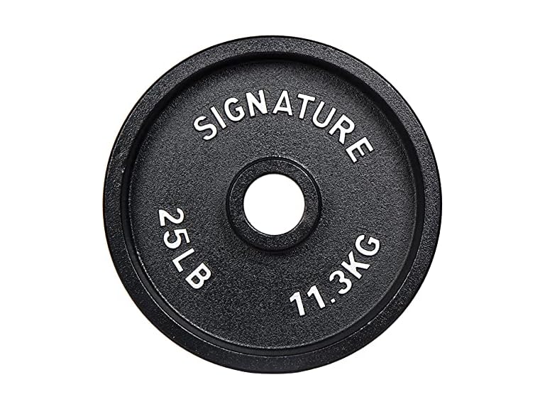 - (1) Signature Fitness Deep Dish 2-Inch Olympic Cast Iron Weight Plates with E-Coating, Black 25lb (SINGLE)