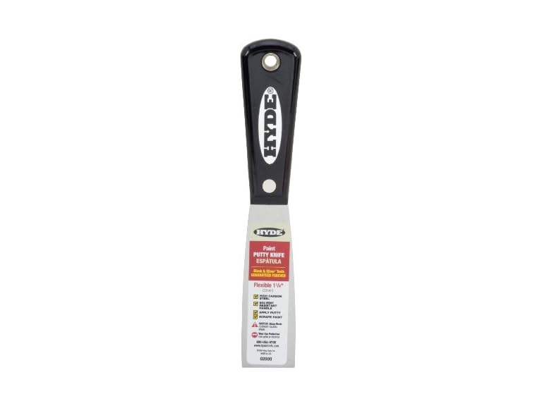 - 1-1/4-Inch flexible black and silver putty knife