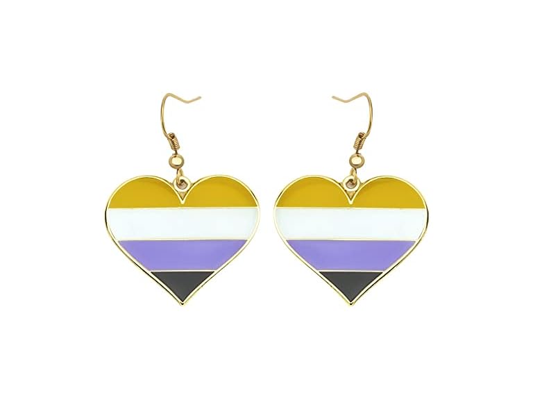 - (1) COLDDOX Heart Shape Pride Dangle Earrings Gay and Lesbian LGBT Pride Gifts Jewelry (Nonbinary Pride Heart Shape)