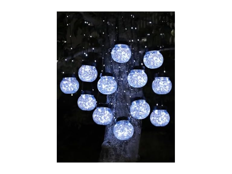 - PARTPHONER Solar Lights Outdoor Waterproof 12-Pack, Solar Powered Hanging Lantern Cracked Glass Hanging Globes for Yard Decor Christmas Decoration, Shepherd Hook, Garden Tree Ornaments, Cold White