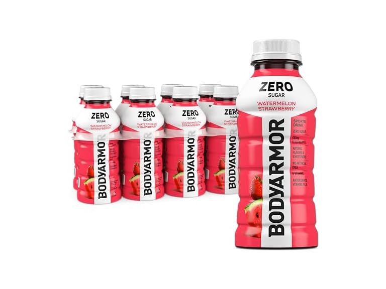 - (1) BODYARMOR ZERO Sugar Watermelon Strawberry Electrolyte Drink, Natural Flavors, 12 Fl Oz Bottles (8 Pack), B Vitamins & Antioxidants Sugar Free Hydration