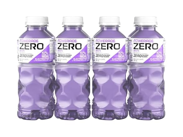 - (1) POWERADE Electrolyte Enhanced Zero Sugar Grape Sports Drink, 20 Ounce (Pack of 8)