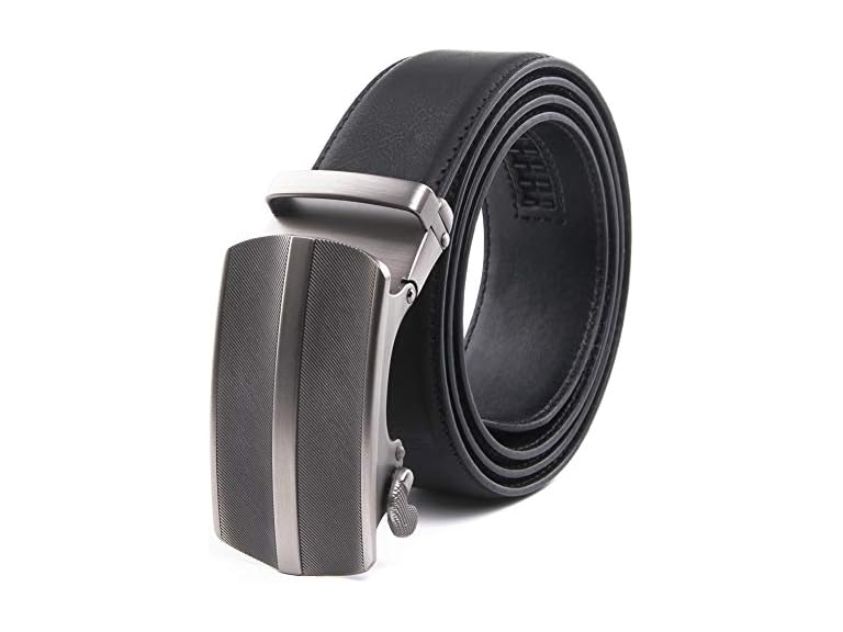 - 🐻Innovative Design--Automatic Buckle with No Hole Ratchet Belt. Just slide the ratchet belt in the automatic sliding buckle and the ratchet belt auto-locks. Lift the automatic buckle up and pull the belt strap to release. Easy and Elegant for daily use.