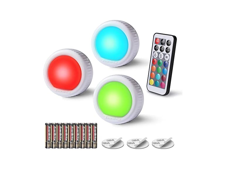 - 3-Pack Led Closet Light - This wireless colored puck light includes 9 AAA batteries, 3-pack sticky adhesive, and remote control, with 80 lumens and 12 RGB color changes, which is a practical light for your life needs