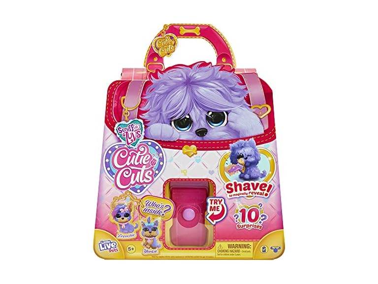 Scruff-a-Luvs Cutie Cuts includes magical clippers that can really clip the fur from your scruffy puppy! As you move the clippers with small upward strokes through your puppy's fur, the fur comes off to begin the reveal your beautiful puppy! Use the trimmed off fur to stuff an included pillow for your pet to sit on while they get pampered. Then wash and dry your Scruff-a-Luvs. Note: not real clippers.