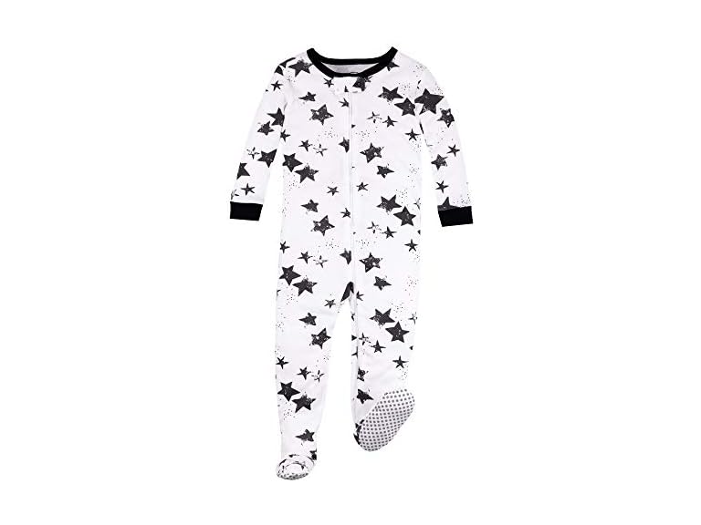 - (1) Lamaze Super Combed Natural Cotton Footed Stretchie One Piece Sleepwear, Baby and Toddler, Zipper, 1 Pack, Black Stars, 2T