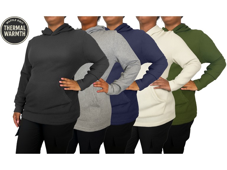 - 3-Pack Women's Loose Fit Waffle-Knit Thermal Pullover Hoodie