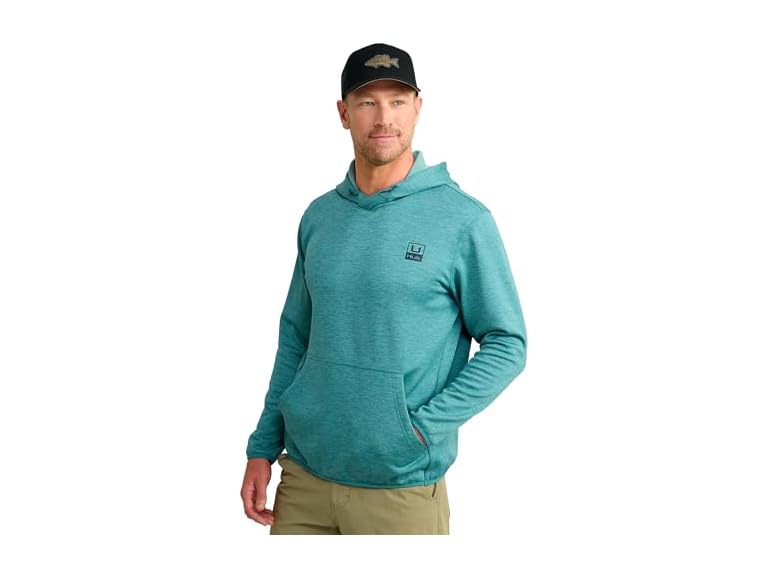 - (1) HUK Mens HUK'D Up Performance Fleece Hoodie, Performance Fishing Hoodie, Storm Blue Heather, Small