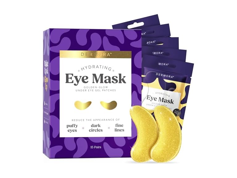 - (1) DERMORA Golden Glow Under Eye Patches | Rejuvenating Treatment | Dark Circles, Puffy Eyes, Refreshing, Revitalizing, Travel, Wrinkles |15 Pairs Eye Gels