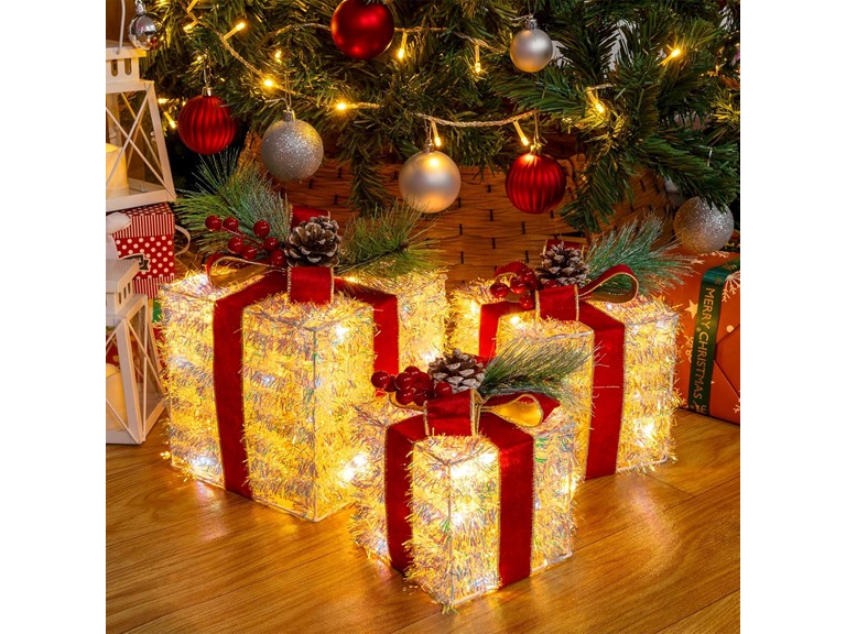 - Safe and Durable: Crafted from high-quality materials, Christmas presents boxes with their weather-resistant design, you can count on them to shine brilliantly throughout the holiday season. We prioritize safety and quality. These lighted Christmas boxes are UL-certified, ensuring your peace of mind while they adorn your home.