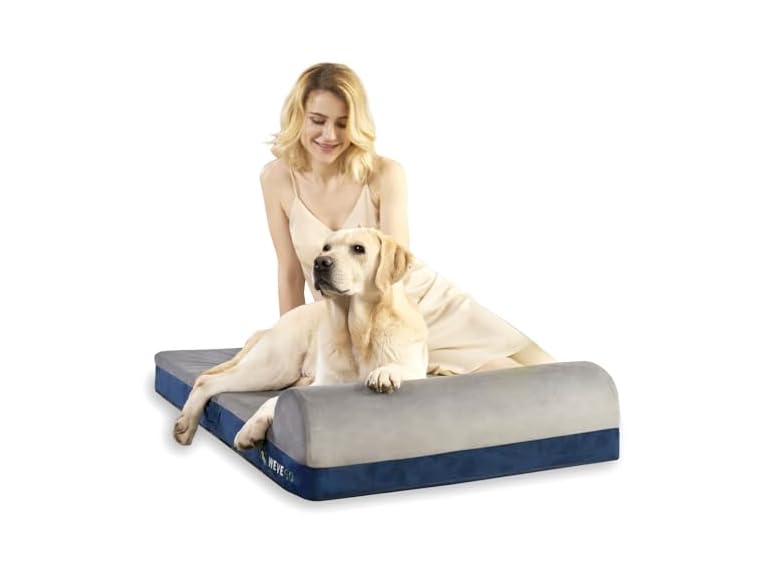 - (1) WEVEGO Jumbo Orthopedic Dog Bed, 7.87-inch Thick Gel Memory Foam Pet Beds with Pillow, Durable Soft Flannel Fabric with Waterproof Liner & Removable Washable Cover Dog Beds for Extra Large Dogs