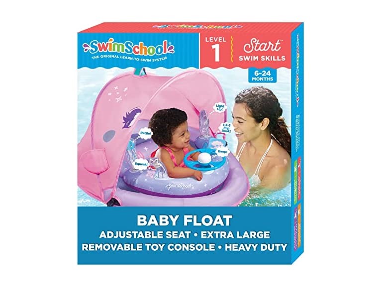 - Deluxe infant pool float: Features a multi-point adjustable safety seat, dual inflation chambers, child safety valves for security, and this pool float is 20 percent wider for superior buoyancy/stability in the water; for ages 6-24 months and up to 29 lbs