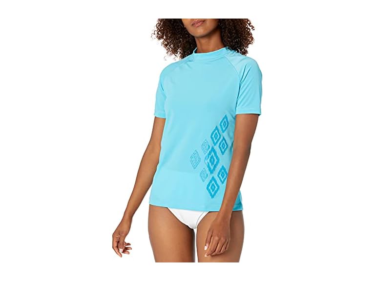 - (1) Kanu Surf Women's Marina UPF 50+ Short Sleeved Active Rashguard & Workout Top, St. Lucia Aqua, Small