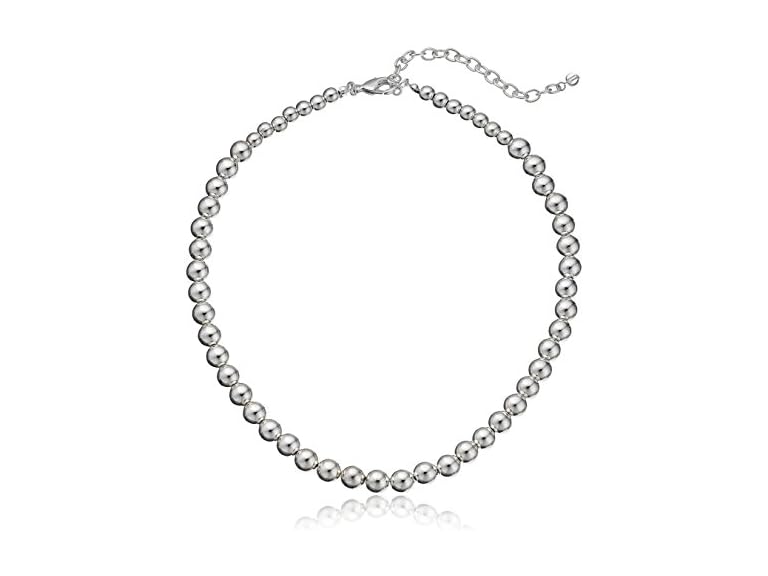 - SILVER-TONE COLLAR NECKLACE: This classically styled collar necklace features a strand of silver-tone beads slightly tapered at the back. Measures 16" length with a lobster-claw clasp & extender.