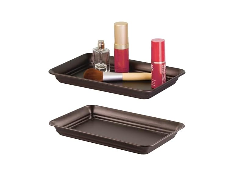 - (1) iDesign Decorative Countertop Vanity Tray Organizer for Bathroom, Bedroom, Closet, Entryway, Set of 2, 9.7" x 6.3" x 1", Bronze